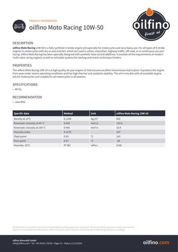 Produits » 2 roues »Oilfino Moto Racing 10W 50 pdf Oilfino Moto Racing 10W 50 Publié le 12 septembre 2025 Par Anonyme Dans 2 roues 4 téléchargements Télécharger (pdf, 107 KB) oilfino_Moto_Racing_10W-50.pdf