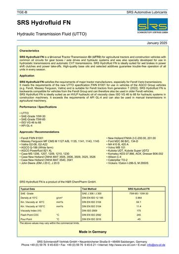 Produits » Agriculture »SRS Hydrofluid FN pdf SRS Hydrofluid FN Publié le 13 septembre 2025 Par Anonyme Dans Agriculture 5 téléchargements Télécharger (pdf, 96 KB) SRS Hydrofluid FN.pdf