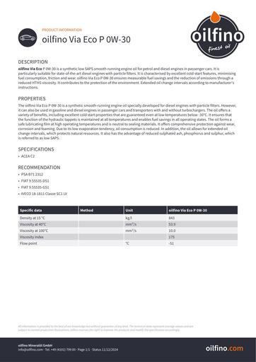 Produits » Automobile »Oilfino Via Eco P 0W 30 pdf Oilfino Via Eco P 0W 30 Publié le 12 septembre 2025 Par Anonyme Dans Automobile 5 téléchargements Télécharger (pdf, 108 KB) oilfino_Via_Eco_P_0W-30.pdf