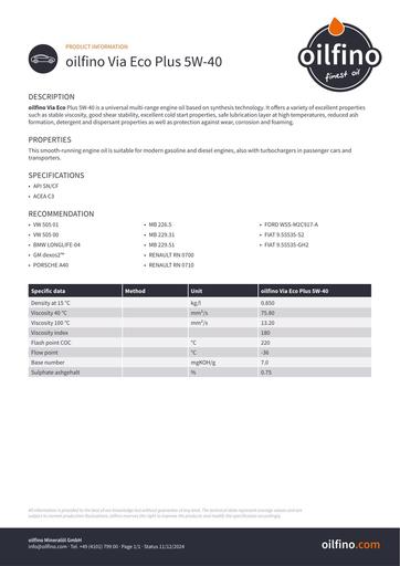 Produits » Automobile »Oilfino Via Eco Plus 5W 40 pdf Oilfino Via Eco Plus 5W 40 Publié le 12 septembre 2025 Par Anonyme Dans Automobile 4 téléchargements Télécharger (pdf, 108 KB) oilfino_Via_Eco_Plus_5W-40.pdf