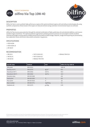 Produits » Automobile »Oilfino Via Top 10W 40 pdf Oilfino Via Top 10W 40 Publié le 12 septembre 2025 Par Anonyme Dans Automobile 4 téléchargements Télécharger (pdf, 108 KB) oilfino_Via_Top_10W-40.pdf