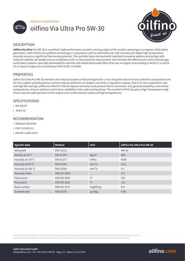Produits » Automobile »Oilfino Via Ultra Pro 5W 30 pdf Oilfino Via Ultra Pro 5W 30 Publié le 12 septembre 2025 Par Anonyme Dans Automobile 5 téléchargements Télécharger (pdf, 108 KB) oilfino_Via_Ultra_Pro_5W-30.pdf