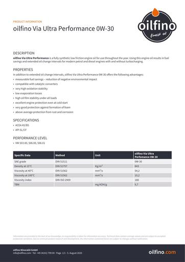 pdf TDB EN Oilfino Via Ultra Performance 0W30