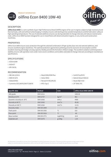 Produits » Transports et PL »Oilfino Econ 8400 10W 40 pdf Oilfino Econ 8400 10W 40 Publié le 12 septembre 2025 Par Anonyme Dans Transports et PL 4 téléchargements Télécharger (pdf, 108 KB) oilfino_Econ_8400_10W-40.pdf